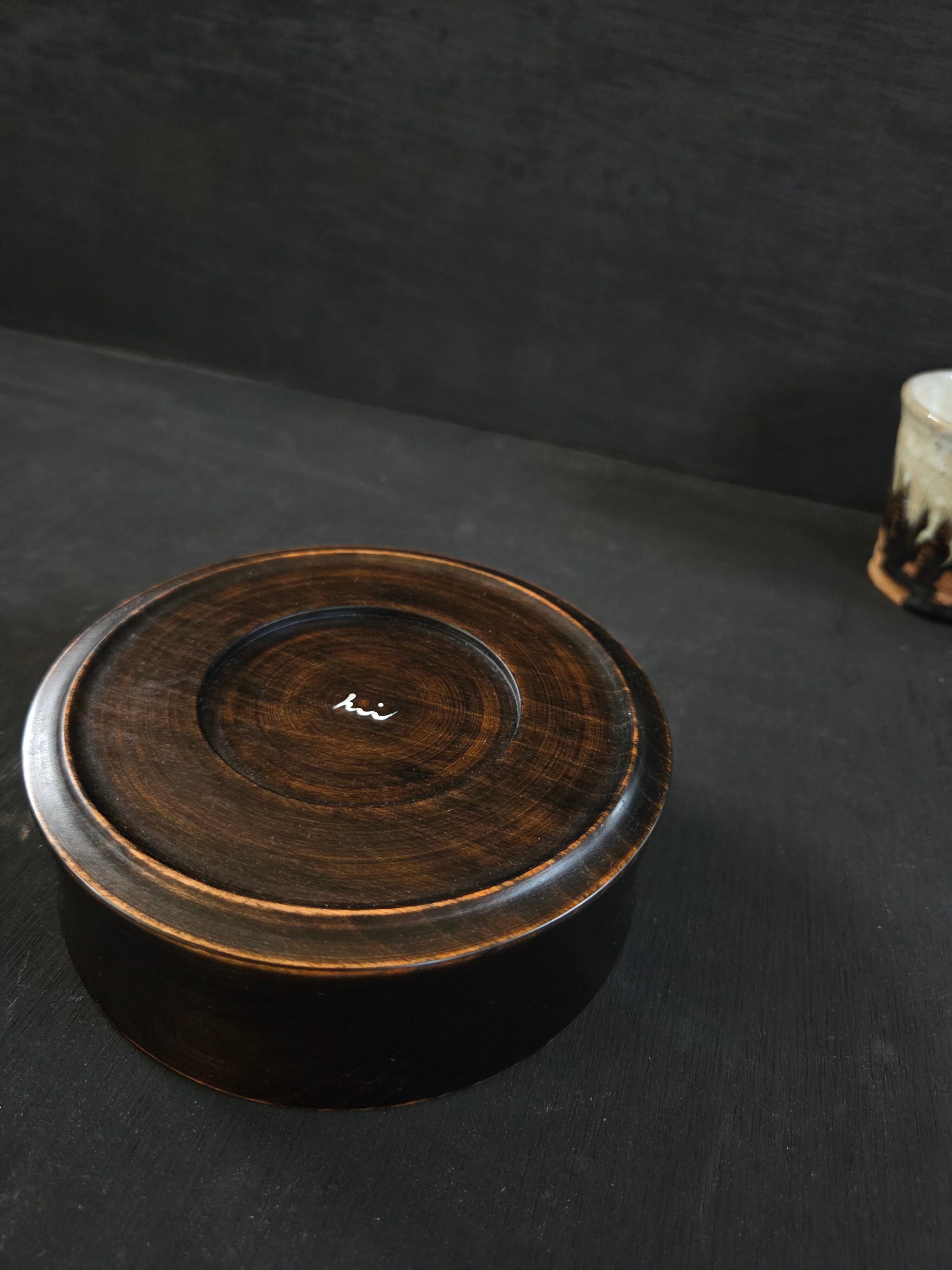 鉄染めした木の黒い肌がとてもシックで、高級感を演出します。菓子鉢としてだけでなく、色鮮やかな料理を一品盛り付けるのにもぴったりの器です。シンプルながらも存在感のあるデザインは、どんなシーンにも調和し、テーブルを引き立てるアイテムになります。